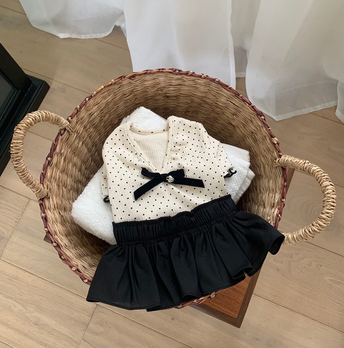 ベルベットリボン ドットワンピース
